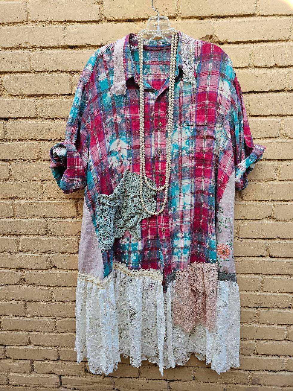 Upcycled vintage One of a kind tunic. Lace trim Lent 21 pit to pit 37